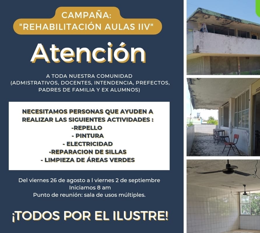 Boca del Río, Ver. Exalumnos del Instituto Ilustre Veracruzano hicieron un llamado a sus excompañeros para que ayuden a la rehabilitación de varias aulas de ese plantel ubicado en la avenida Ruiz Cortines de la ciudad de Boca del Río.
