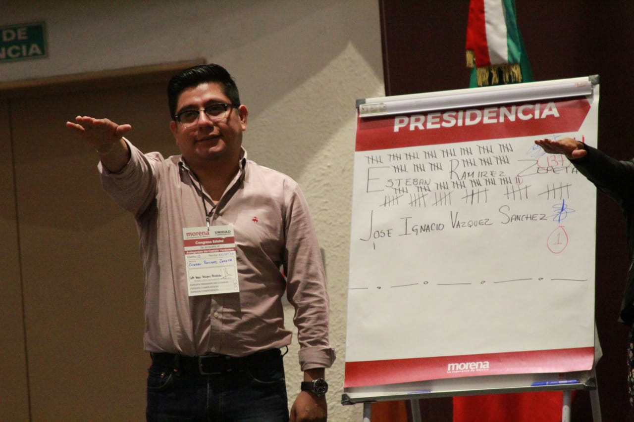 El nuevo Presidente del Comité Ejecutivo Estatal, Esteban Ramírez Zepeta, quien ganó con 137 votos de 200, agradeció la decisión casi unánime de los consejeros que votaron por él de forma organizada y tranquila, y anticipó que en Veracruz la 4T está en marcha y no se detiene.