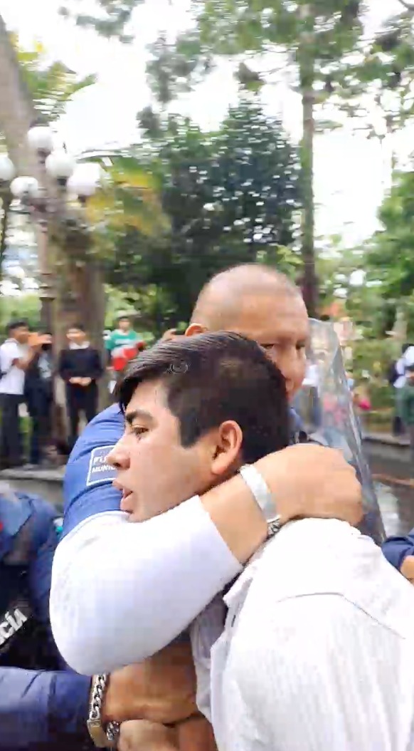 Antes de que eso sucediera, los uniformados se abalanzaron sobre los lideres logrando detener a dos de ellos que fueron sacados a golpes y cachetadas.