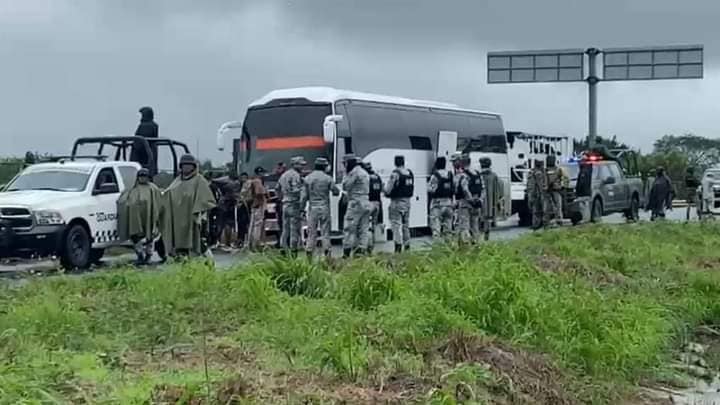 El carril de Sayula de Alemán para Acayucan tuvo que cerrar al tráfico vehicular, por la Guardia Nacional y el Ejército Mexicano, en apoyo del INM.