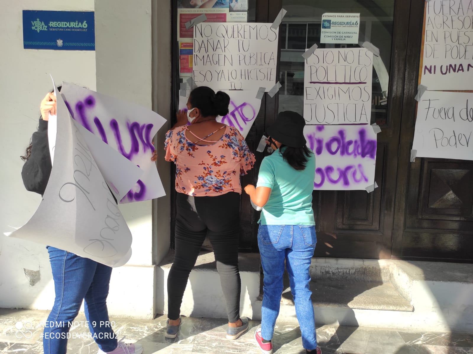 Veracruz, Ver. Un grupo de mujeres acudió a las puertas de la oficina de la regiduría sexta del ayuntamiento de Veracruz para clausurarla de manera simbólica en repudio al regidor, Sebastián Cano Rodríguez.