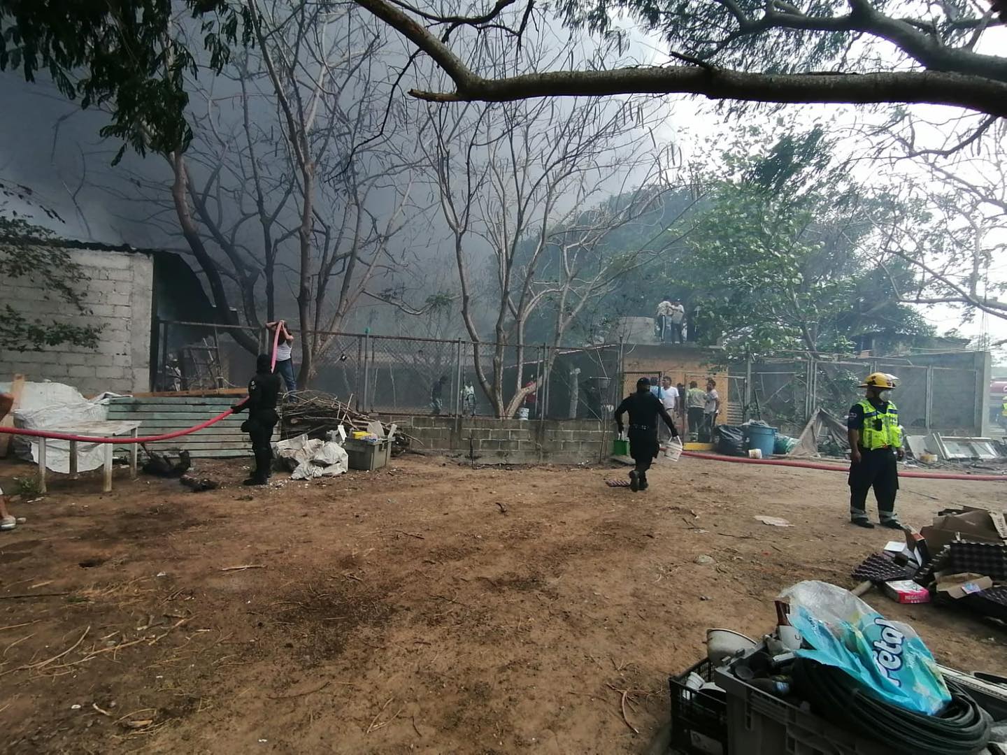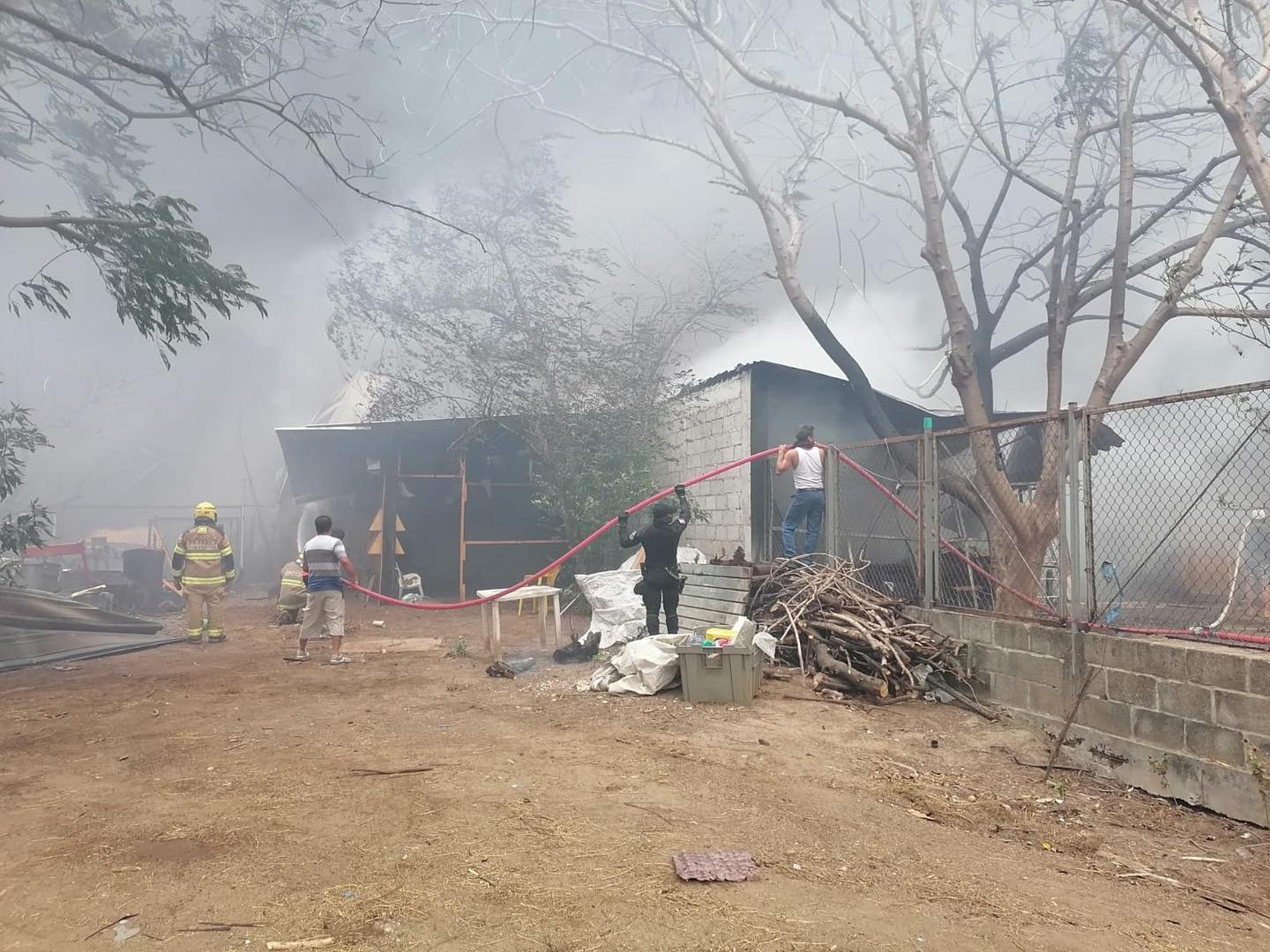 Elementos de la Policía del Estado y vecinos también cooperaron con cubetas de agua, arriesgando su propia integridad, pues el incendio por momentos estaba descontrolado y temían que llegara a una gasera que está en la parte trasera.