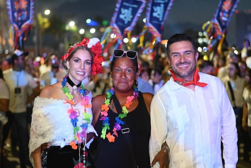 La alcaldesa Paty Lobeira de Yunes, vestida con el traje típico de jarocha, encabezó el desfile acompañada por su esposo Miguel Ángel Yunes Márquez, el alcalde de Boca del Río, Juan Manuel Unánue, así como de funcionarios de ambos municipios.