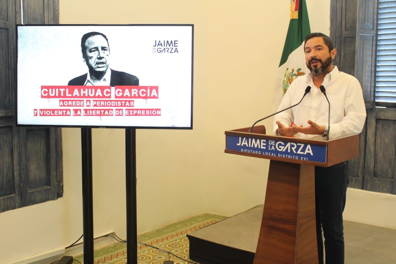 *Veracruz, Ver., 27 de julio de 2023.-* El diputado local y presidente de la Comisión de Atención a Periodistas, Jaime de la Garza Martínez, señaló que Cuitláhuac García agrede a periodistas y violenta la libertad de expresión, y advierte que con estas acciones el Gobernador alienta a que actores sociales, políticos y del crimen organizado se sumen a esta ola de violencia contra los comunicadores veracruzanos.