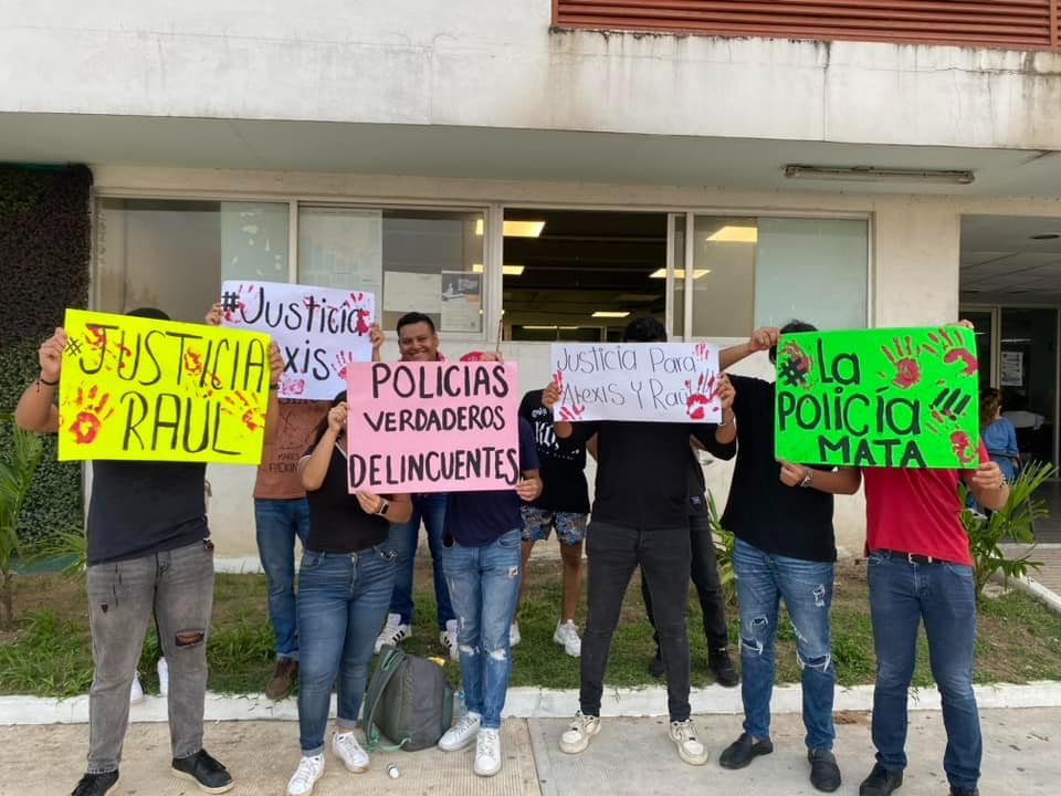 Otros jóvenes, compañeros de escuela de Raúl Solís, que manejaba el automóvil baleado por los uniformados, acudieron a la Fiscalía Regional para protestar solicitando su liberación.