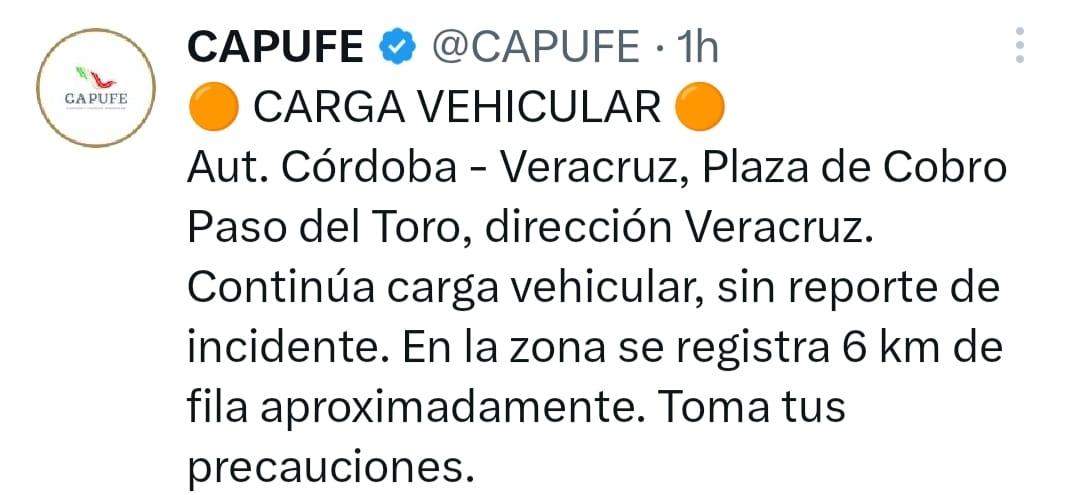 La cuenta de Twitter (X), de CAPUFE aclaró que había tráfico intenso, pero que no era debido a algún incidente, sino a la vialidad lenta que estaban presentando.