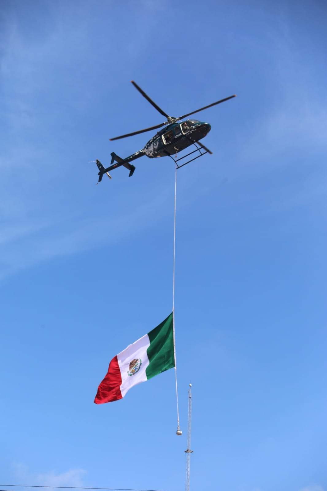 En el palco, acompañaron al Gobernador el comandante de la 26/a Zona Militar, General Rubén Zamudio Matías, y en representación de la Tercera Región Naval el vicealmirante Jesús Pineda Flores; así como las presidentas del Congreso local y el Tribunal Superior de Justicia, Margarita Corro Mendoza y Lisbeth Aurelia Jiménez Aguirre, titulares de organismos autónomos e integrantes del Gabinete.