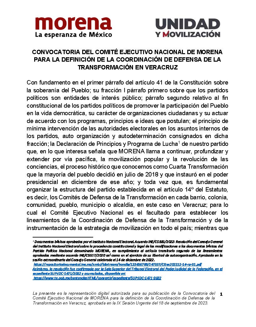 Veracruz, Ver. El Comité Ejecutivo Nacional de Morena lanzó la convocatoria de inscripción de los aspirantes a ser candidatos a la gubernatura del estado de Veracruz.