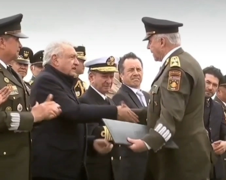 A un costado estaba el actual titular de Sedena, el General Crescencio Sandoval que miraba todo con una sonrisa de satisfacción que quedó grabada en las fotografías de la prensa nacional.