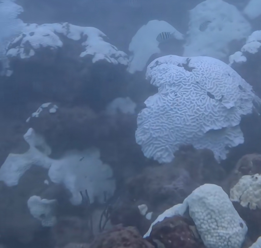 En el material videográfico detalla que acudió a una clase de campo, el pasado 27 de octubre de este 2023, sin embargo, no fue lo que esperaba al ver las condiciones en las que estaban los corales.