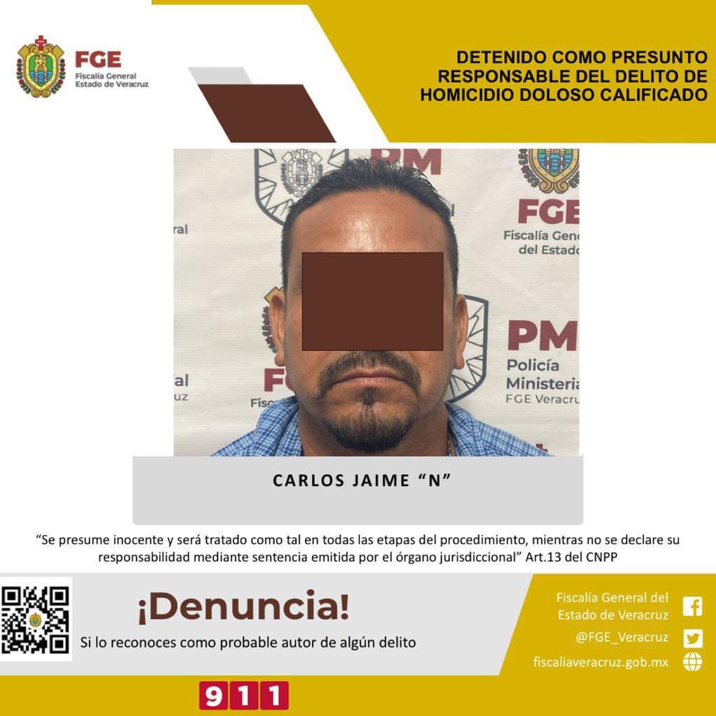 Xalapa, Ver., 2 de enero de 2024.- Elementos de la Delegación Regional Xalapa de la Policía Ministerial cumplimentaron orden de aprehensión en contra de Carlos Jaime “N”, ex elemento de la Secretaría de Seguridad Pública, como presunto responsable del delito de homicidio doloso calificado en agravio de la víctima identificada con las iniciales G.O.H.