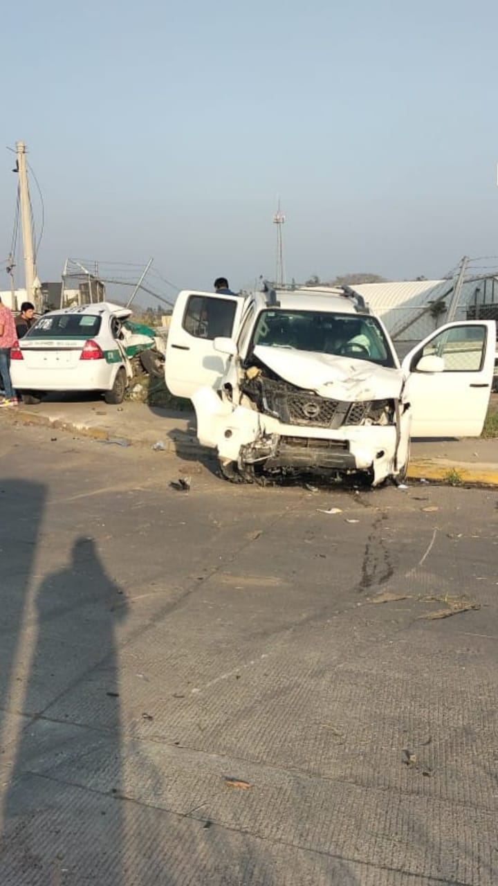 Sin embargo el taxista se atravesó sin las debidas precauciones en el carril por donde circulaba una camioneta Nissan, tipo doble cabina, color blanco, modelo reciente.