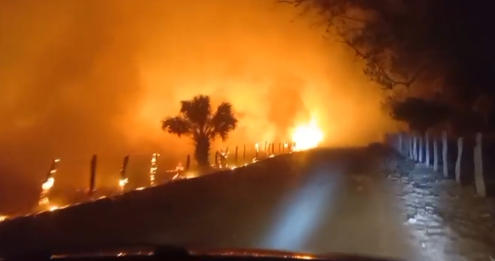 Otros de las ciudades afectadas, pero en el sur, es San Juan Evangelista, donde se mantienen trabajos de combate, control y liquidación del incendio de pastizal ubicado en la zona conocida como Rancho Juanita y Raya La Carolina.
