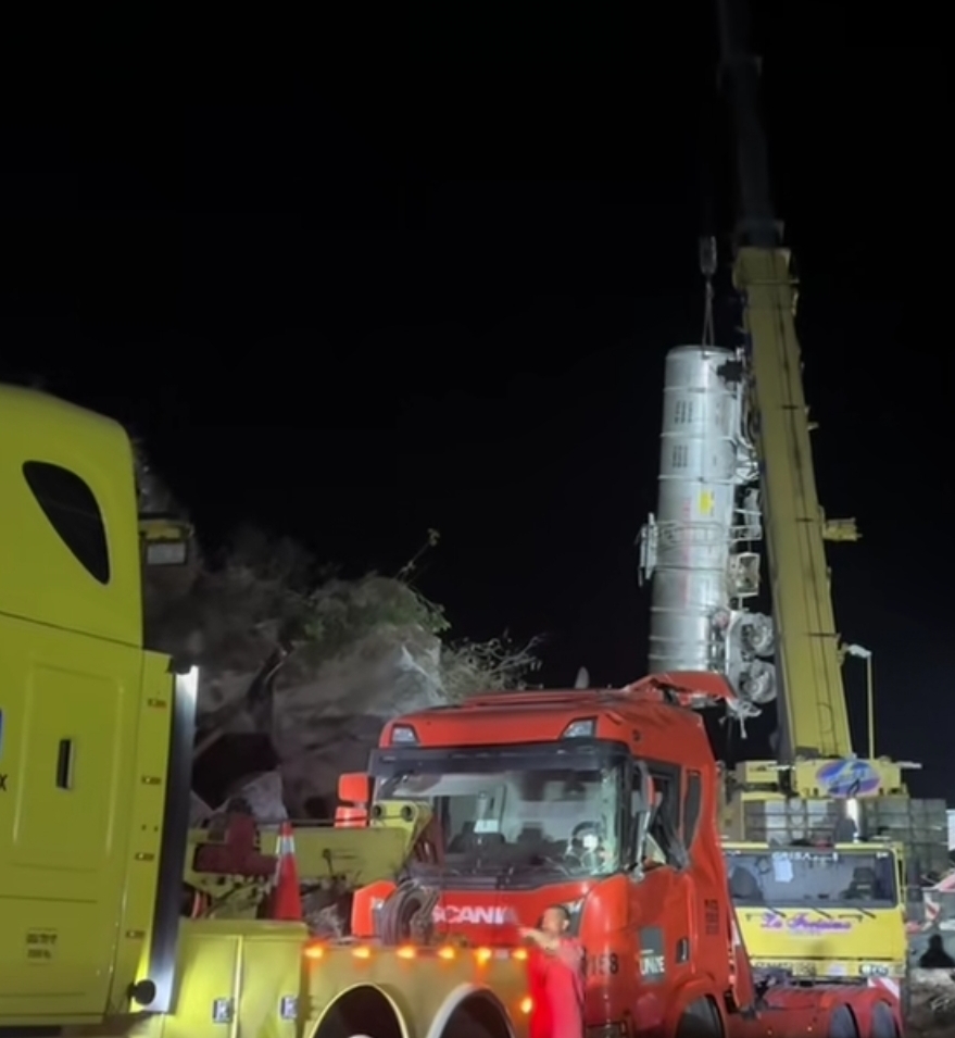 *Dan a conocer video del trabajo de las grúas jalando los restos de tractocamiones y de una salchicha