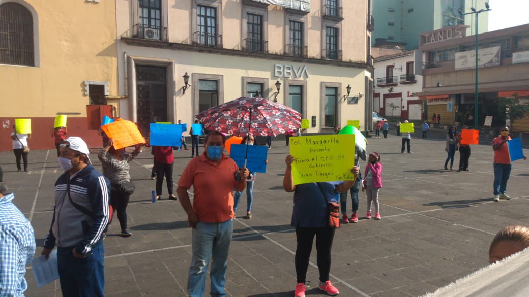Nuevamente comerciantes y tianguistas se manifestaron en el centro y se instalaron afuera de Palacio Municipal en protesta porque el alcalde, Hipólito Rodríguez Herrero, no los ha apoyado.
