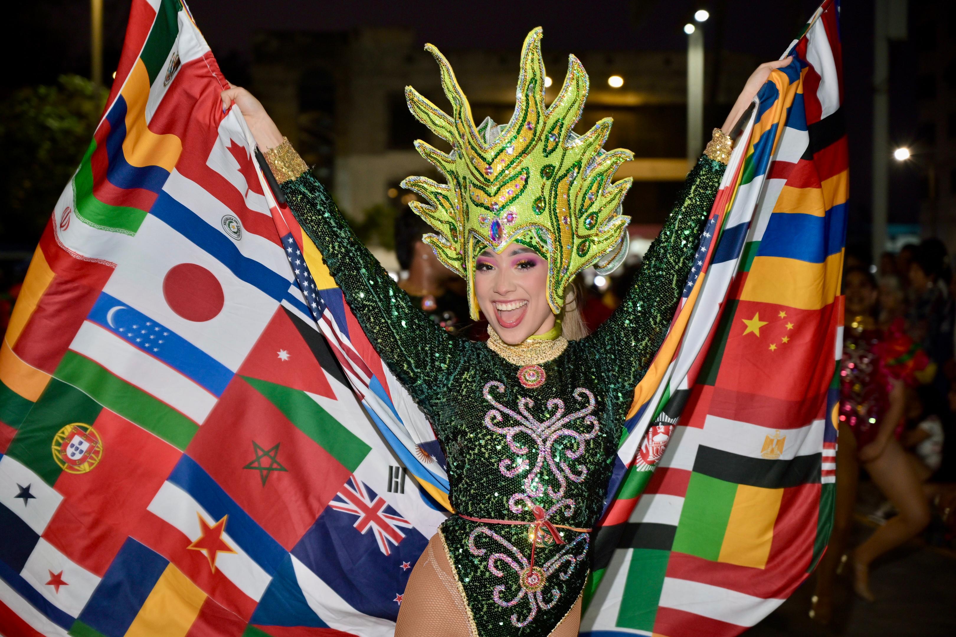 El papaqui reunió a talentosos miembros de academias de baile, comparsas tradicionales y batucadas que llenaron de ritmo el bulevar. También desfilaron las y los candidatos a la Corte Real 2026, junto a la Reina Electa, Fernanda Pumar, y al Rey Infantil Electo, Gael Santiago, quienes saludaron a la ciudadanía desde un vistoso carro alegórico.