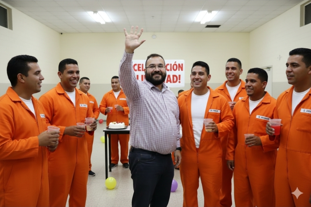 Por ahí sus promotores y defensores de oficio en la prensa...hasta le echaban porras y decían que se había portado rebien en el Reclusorio Norte....que en una redacción del bulevar a Boca del Río hasta le estaban organizando una comitiva de bienvenida cuando saliera del tambo...con globos y serpentinas....y no es les hizo....Diosito no concede antojo ni endereza jorobadosssss....