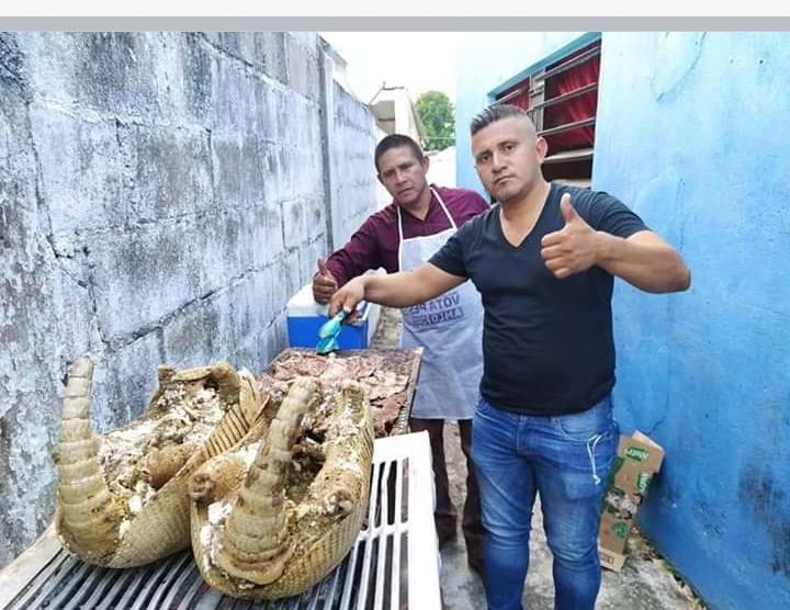 Según las imágenes que proporcionaron, hombres atraparon a los dos ejemplares adultos y los hicieron a las brasas para después servirlos en una mesa en donde estaba sentada la funcionaria del gobierno de Cuitláhuac García Jiménez.