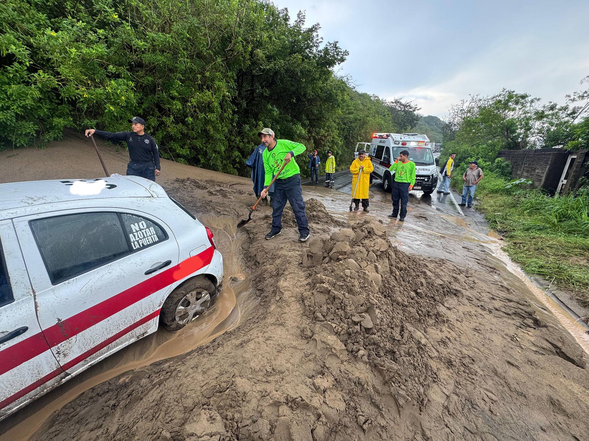 Autoridades recomiendan a los automovilistas extremar precauciones, reducir la velocidad y evitar transitar por zonas con deslaves o encharcamientos.