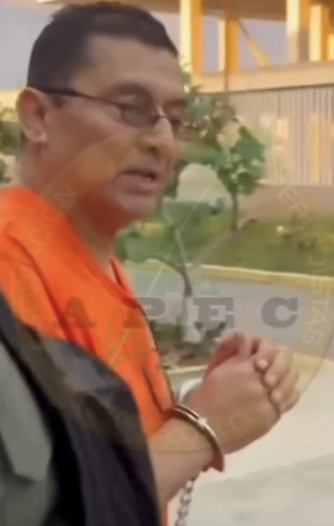 Veracruz, Ver. Esposado, flaqueado por dos policías ministeriales con ropa táctica y usando un uniforme naranja, así fue captado el periodista, Lafita León, acusado por la Fiscalía General del Estado de Veracruz de terrorismo y otros delitos.