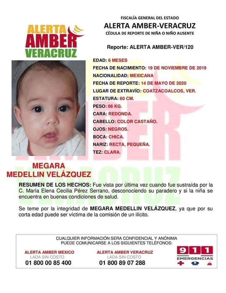 Se trata de Megara Medellín Velázquez, de seis meses, hija de la pareja formada por Ricardo Medellín y Michell Velázquez, ambos victimas de sicarios cuando trasmitían un evento en vivo en Facebook, por el Día de las Madres.