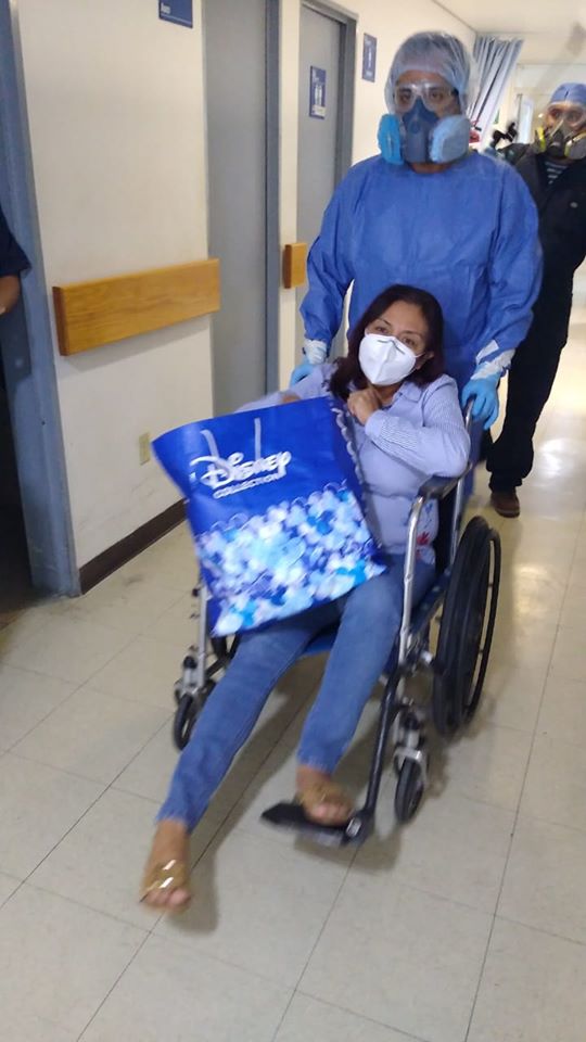 Los enfermos que regresaron a recuperarse a sus casas para seguir con su recuperación fueron despedidos por todo el personal entre aplausos y porras para que tenga ánimo para seguir luchando por sus vidas.