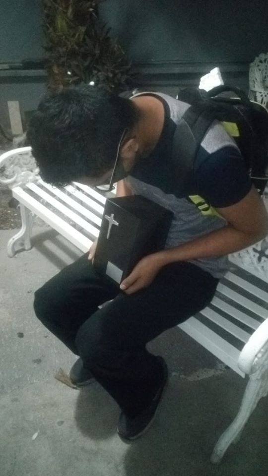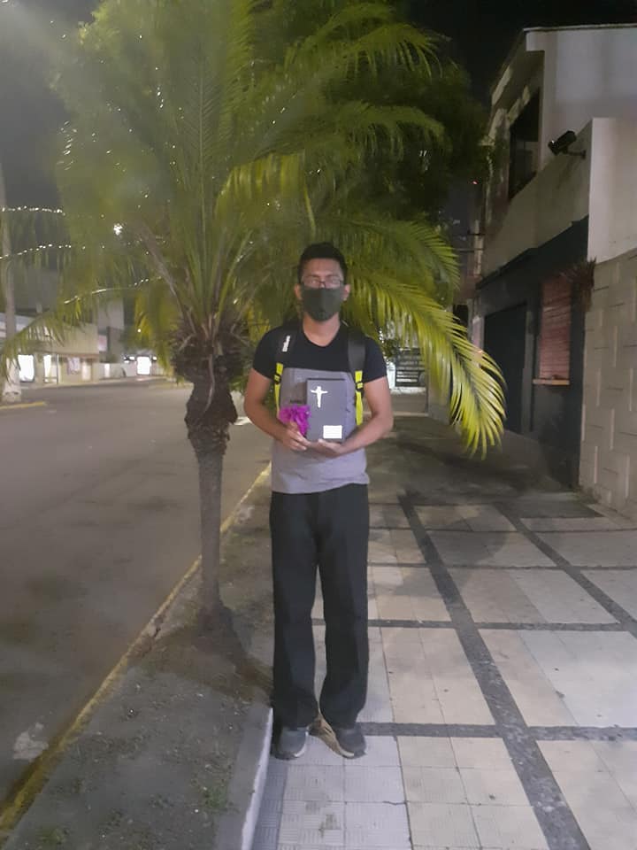 Por la tarde, Jorge Luis Drako difundió el camino a su casa, cargando la cajita de madera con una cruz, en otra imagen aparece sentado en una banca pública, llorando su sentir.