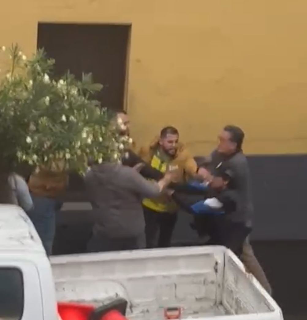 El violento episodio ocurrió luego que el reportero hiciera unas tomas, tanto con fotografías como con video de los enseres que algún locatario había sacado de los locales, que se encontraban sobre la banqueta de enfrente a la plaza comercial San Jerónimo.