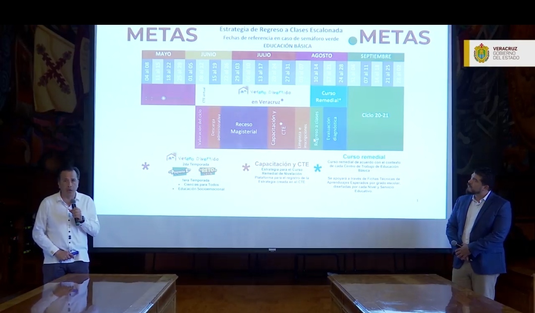 El gobernador del Estado, Cuitláhuac García Jiménez, confirmó que con base en el plan nacional para el regreso a la nueva normalidad, el regreso a las clases presenciales será a partir del próximo 10 de agosto, siempre que el semáforo esté en verde.