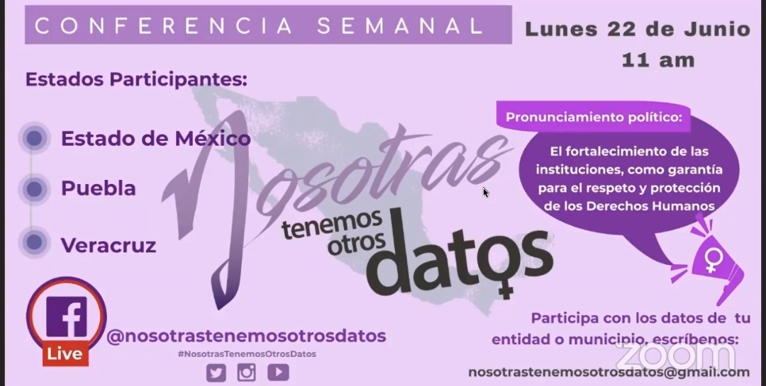 Así se pronunciaron las representantes de colectivos de defensa de los derechos de las mujeres de los estados de México, Puebla y Veracruz, durante el conservatorio de este lunes de la asociación “Nosotras tenemos otros datos”.