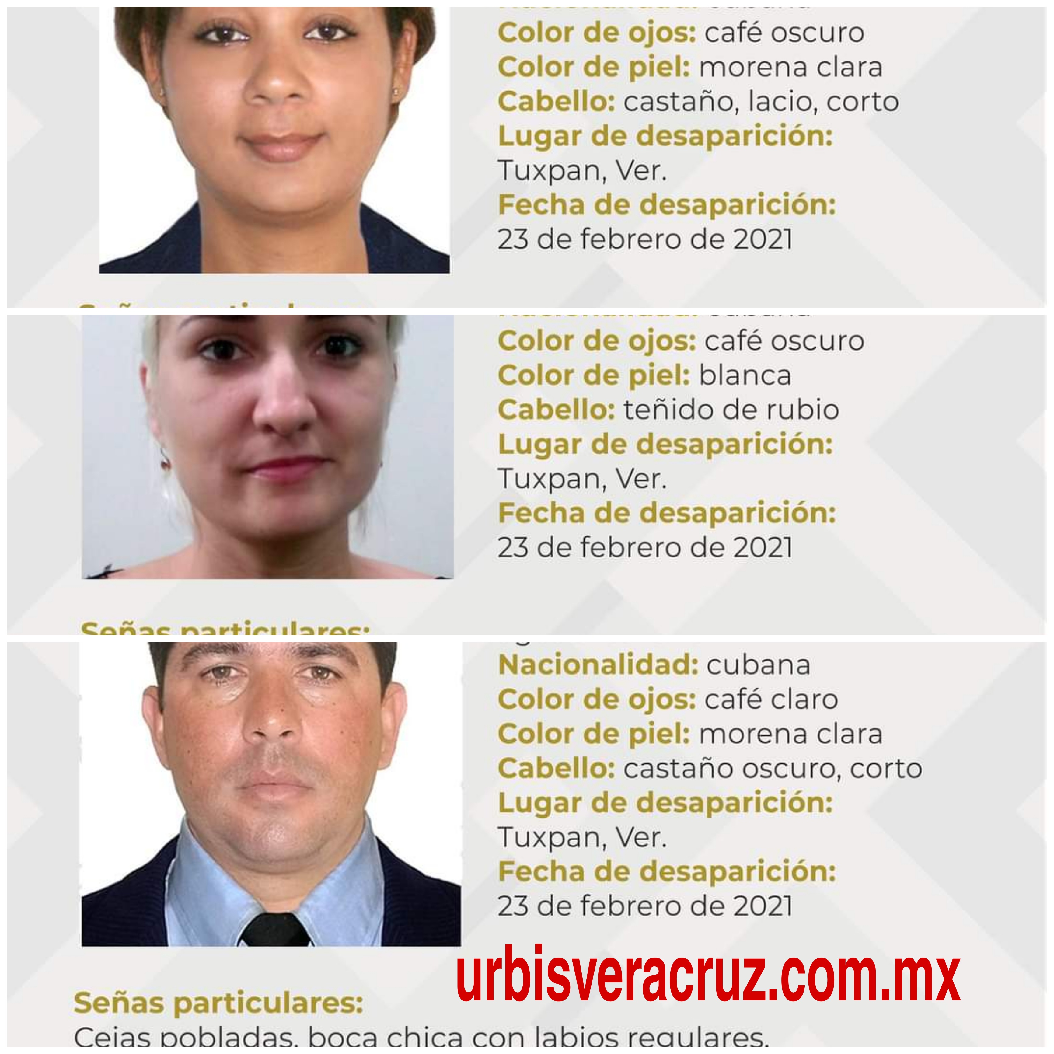 Se trata de Carmen Dianeyz Boza Banguela, de 32 años; Mercedes Díaz Gómez, de 30 años y Yuri Lorenzo Torre, de 41, todos desaparecidos el 23 de este mes y de origen cubano.