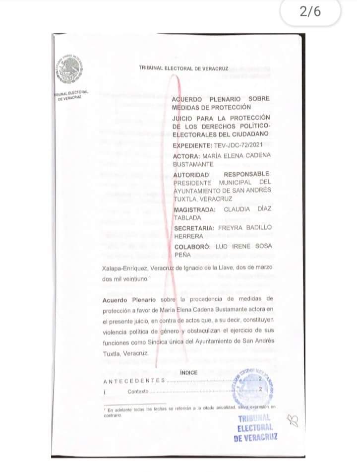 El 2 de marzo el Tribunal Electoral de Veracruz, bajo el oficio 958/202, dieron atención a la denuncia bajo el juicio para la protección de los derechos políticos electorales del ciudadano que quedó asentado en el expediente TEV- JDC- 72/2021.
