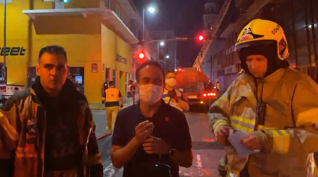 Veracruz, Ver. El presidente municipal de Veracruz, Fernando Yunes Márquez arribó a la zona del incendio que se registró en la avenida Independencia, a una cuadra de la Catedral y que dejó a una mujer atrapada que tuvieron que rescatar con una escalera.