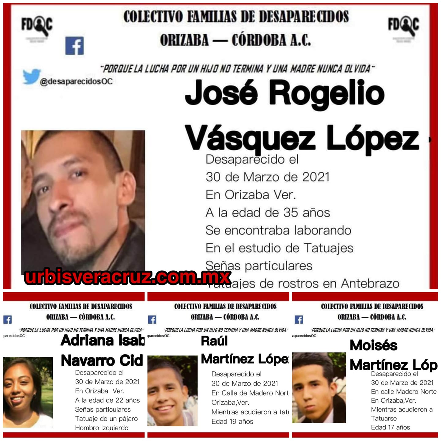 Más tarde, la misma Aracely Salcedo confirmó a medios de Orizaba que no sólo había desaparecido Adriana Isabel, también un hombre de 35 años, de nombre José Rogelio Vázquez López, que era el tatuador encargado del lugar.