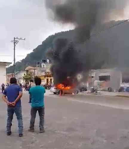 Al final, los habitantes no pudieron llevarse a los presuntos ladrones, pero sí quemaron el vehículo que era propiedad de los supuestos delincuentes y causaron daños a la fachada de la policía.