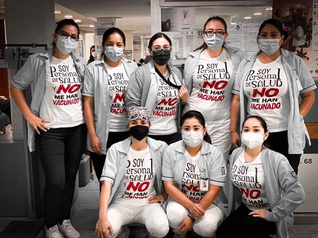 Las jóvenes pidieron que ya les apliquen la vacuna en contra del coronavirus pues son parte del personal del IMSS que todavía no ha recibido ese derecho.