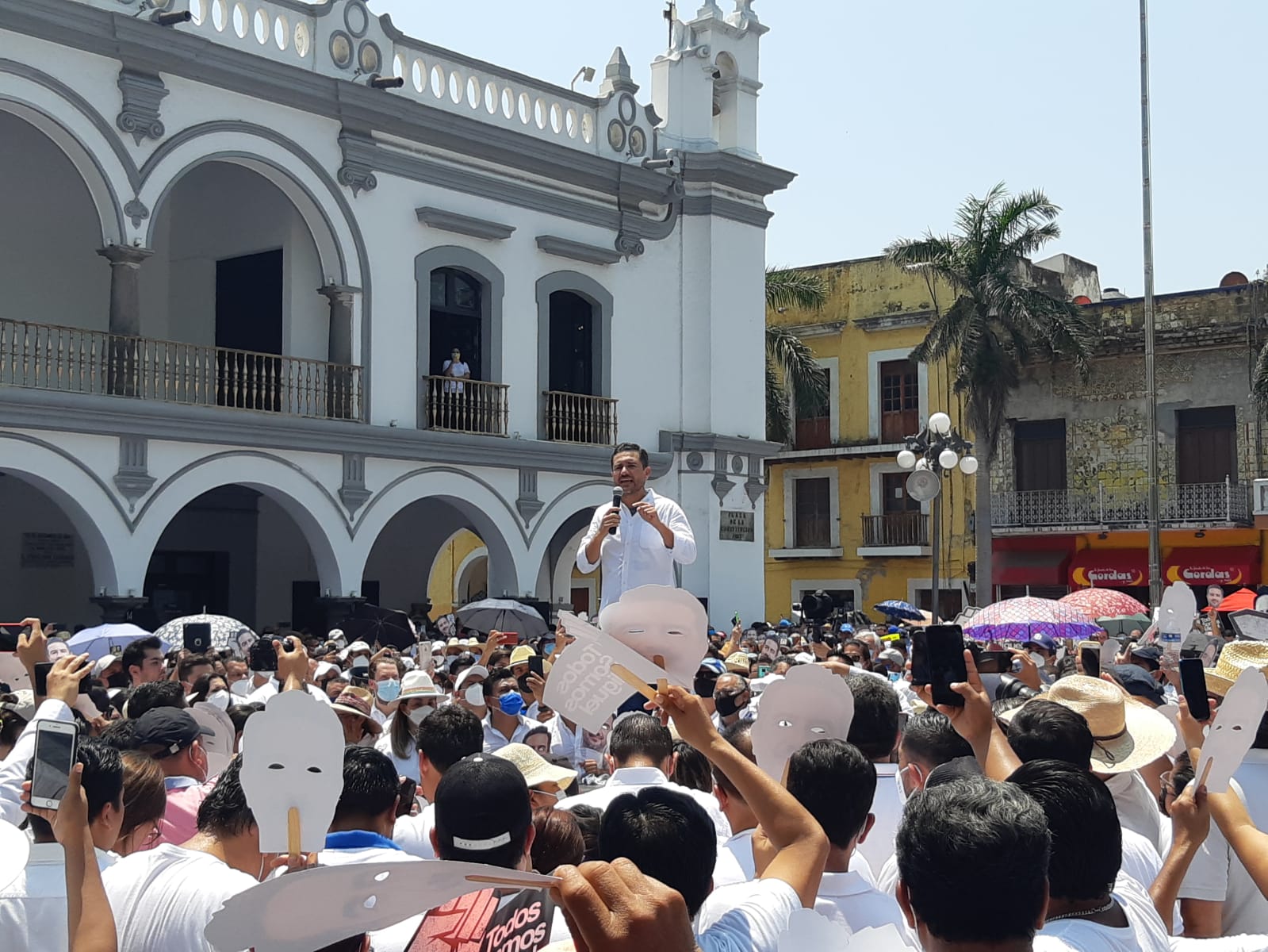 “Veracruz no merece un dictadorzuelo que quiera regir la vida de la gente”, señaló ante la algarabía de los presentes, la mayoría con máscaras de Miguel Ángel.