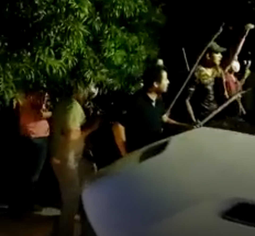Debido a que los inconformes grabaron enlaces en vivo de lo que pasaba, los morenistas sacaron armas blancas y garrotes con los que intentaron ahuyentar a la multitud, sin éxito.