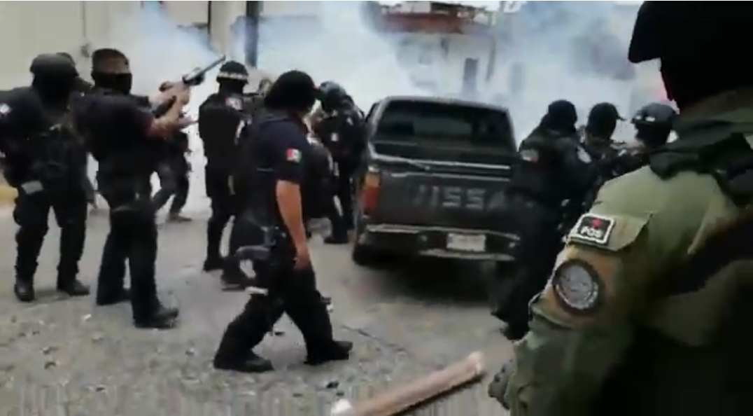 Veracruz, Ver. Elementos de la Secretaría de Seguridad Pública del estado de Veracruz arremetieron a golpes y con gases lacrimógenos en contra de una manifestación de pobladores del municipio de Comapa que estaban en plantón afuera de la Fiscalía Regional en Huatusco, en las llamadas Faldas del Pico de Orizaba.