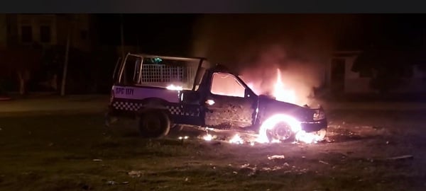 Testigos aseguran que los responsables de echarle una molotov a la unidad oficial fueron agitadores del partido Podemos que tiene una afrenta con simpatizantes de Morena que, presuntamente, son apoyados por la alcaldesa de ese municipio, Mayra Torres Domínguez.
