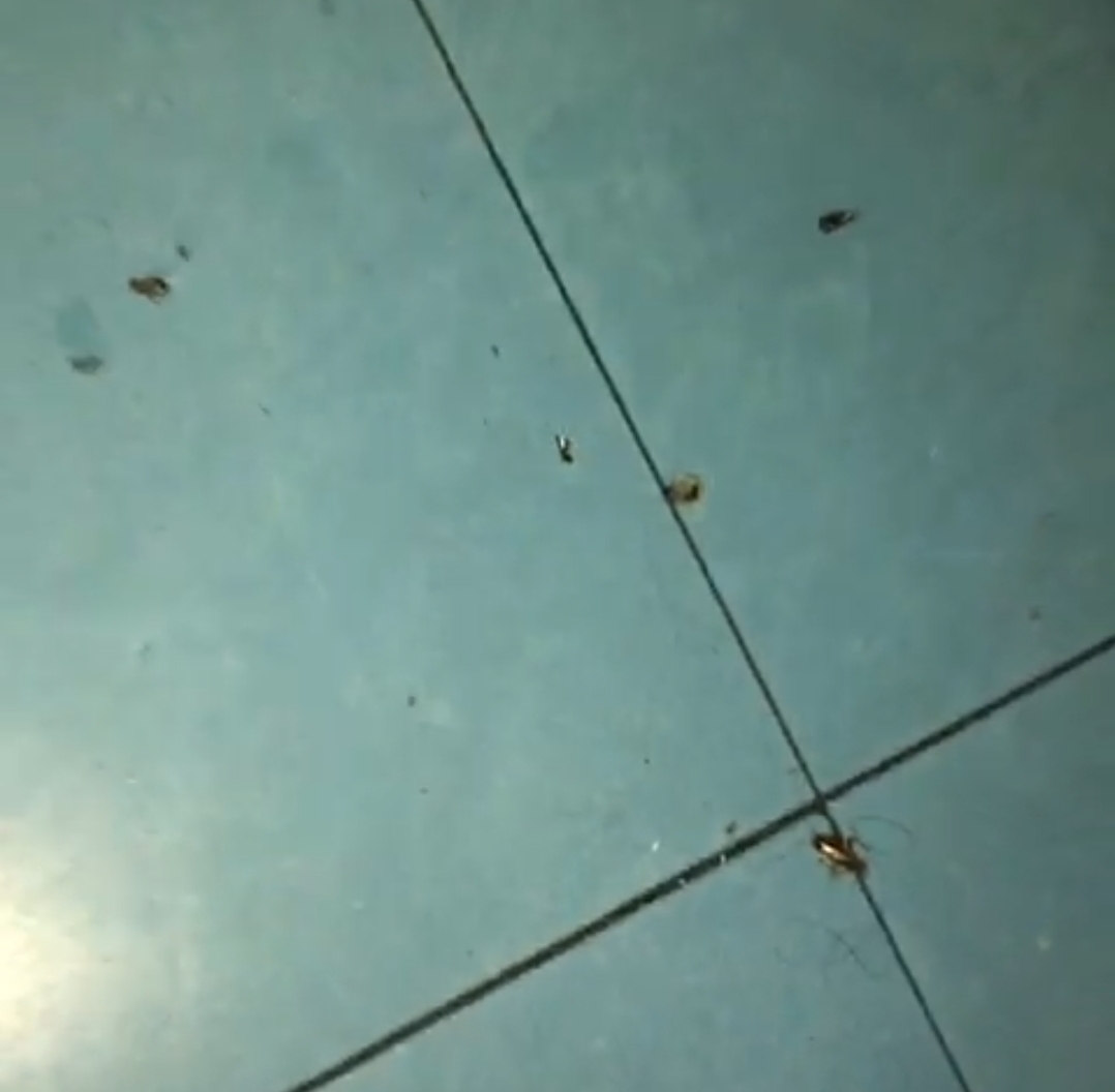 Dentro de las imágenes que mandó captó varias cucarachas rondando, además, mostró todas las que estaban ya muertas en el piso porque él las había matado cuando pasaban por sus pies.