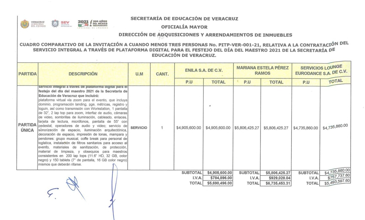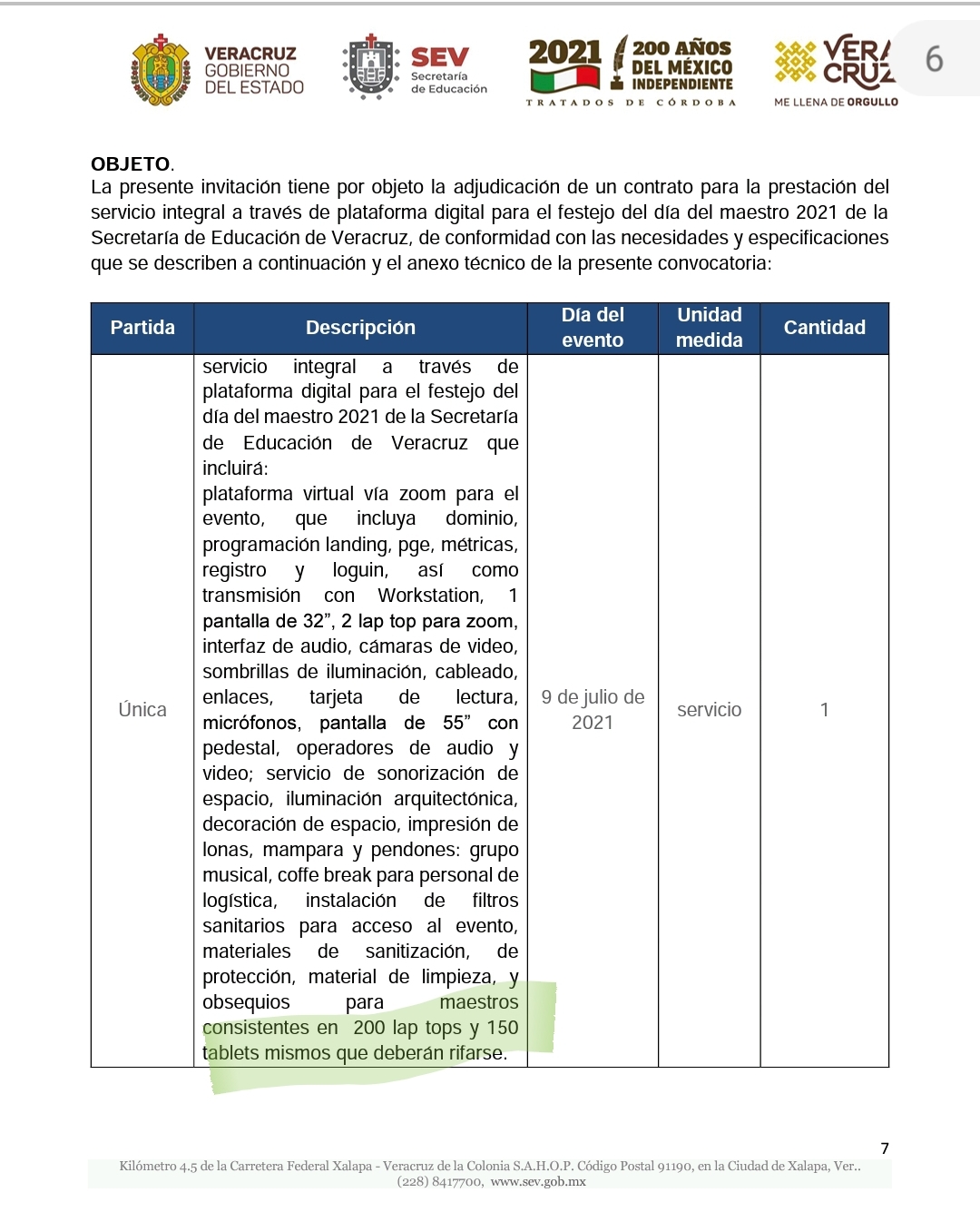 Veracruz, Ver. La secretaría de educación de Veracruz (SEV) lanzó una licitación exprés para la organización del festival del Día del Maestro en menos de 10 días, que se realizará este viernes 9 de julio de 2021, en la ciudad de Xalapa.