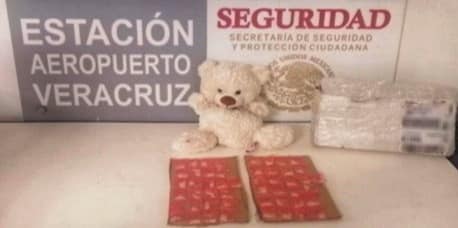 Veracruz, Ver. La Guardia Nacional informó que detectaron droga dentro de un oso de peluche en el aeropuerto internacional “Heriberto Jara Corona”, de la ciudad de Veracruz.