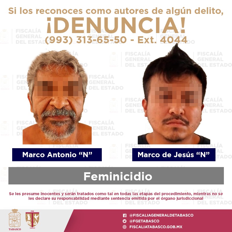 Al darles seguimiento, este mediodía, fueron detenidos en la ranchería Monte Largo primera sección de Macuspana, Marco Antonio “N” y Marco de Jesús “N”, quienes de acuerdo con las indagatorias resultaron ser padre e hijo.