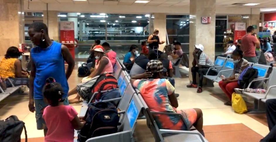 La mayoría del grupo de haitianos esperaban en la sala del ADO a poder abordar una unidad, en su mayoría eran mujeres jóvenes con niños y bebés de menos de un año.