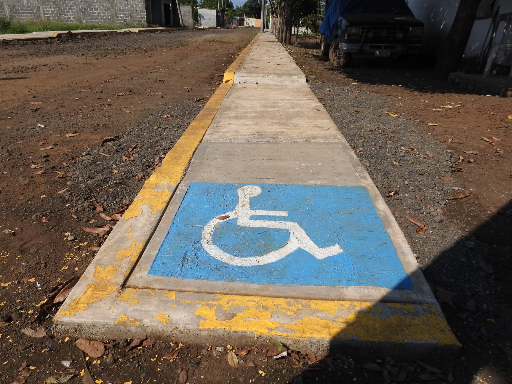 Sin embargo, en dicho lugar, de ambos lados, impera una calle de tierra con cientos de piedras y lodo, por lo que lo hace que sea inútil tener esas rampas.