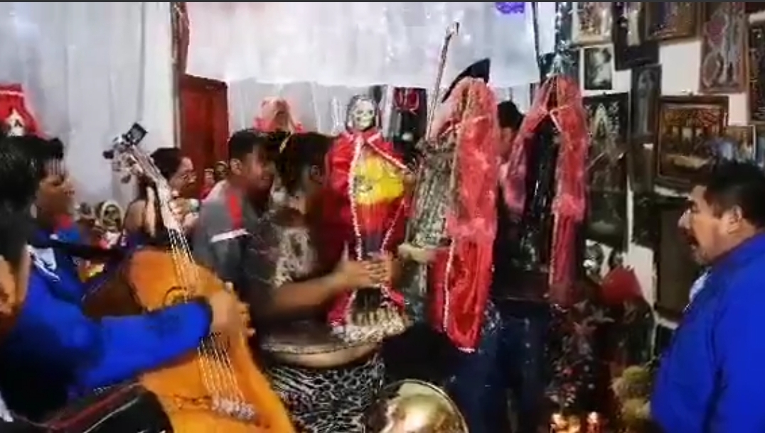Veracruz, Ver. Pobladores de la ciudad de Acayucan festejaron a la Santa Muerte con un baile masivo en el domo del poblado Cruz Verde a donde acudieron unas 5 mil personas.