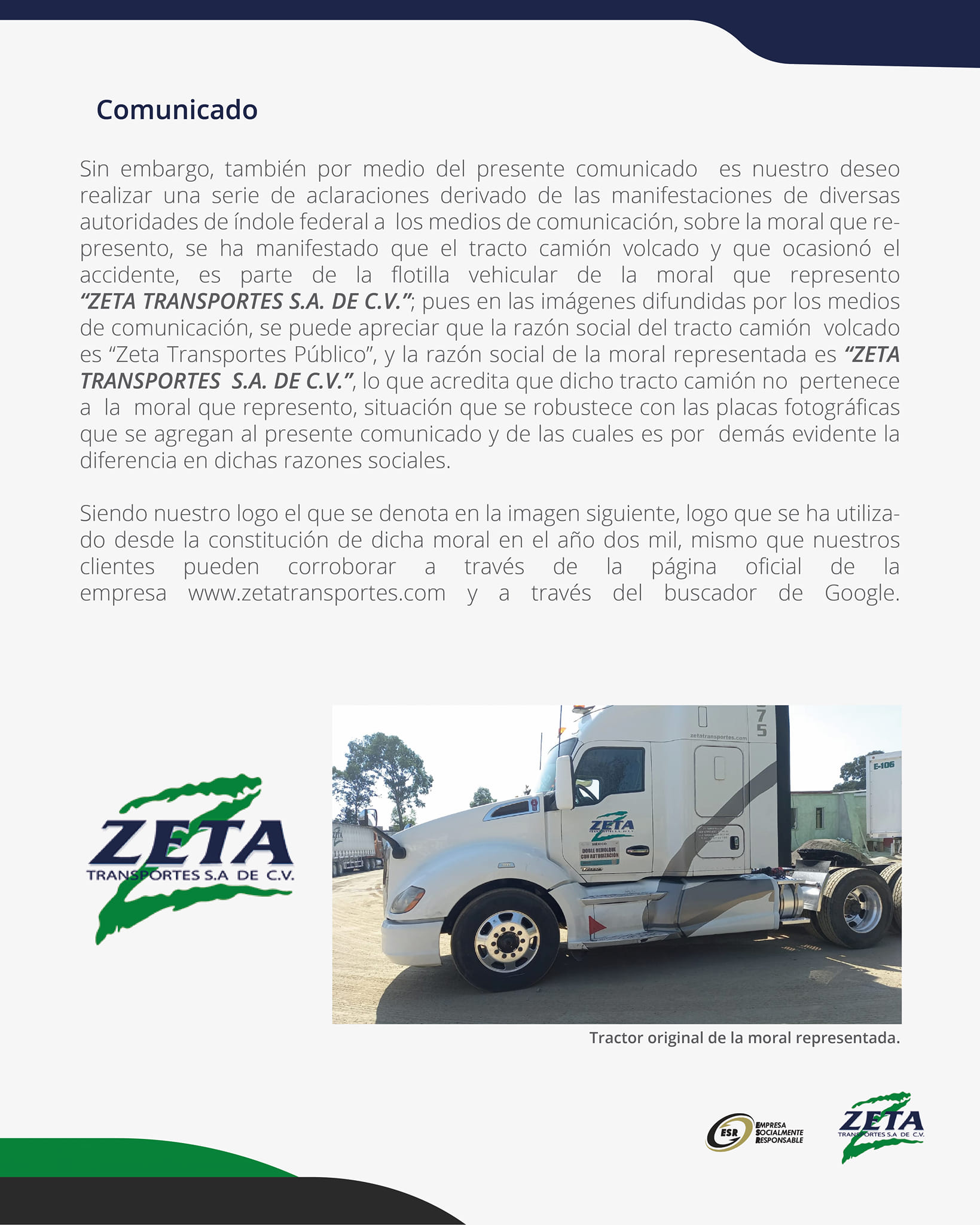 Explicaron que el logotipo se ha utilizado desde la constitución de la empresa y que todos los detalles se pueden apreciar en su página y portal zetatransportes.com.