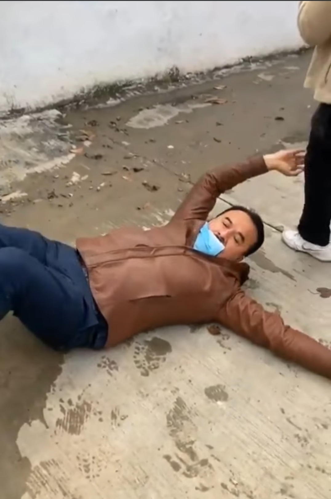 Cuando le dieron el empellón, el alcalde pisó el fango y resbaló, por lo que quedó en el suelo piernas y brazos arriba, sin poder incorporarse, hasta que una mujer llegó a ayudarlos a pararse.
