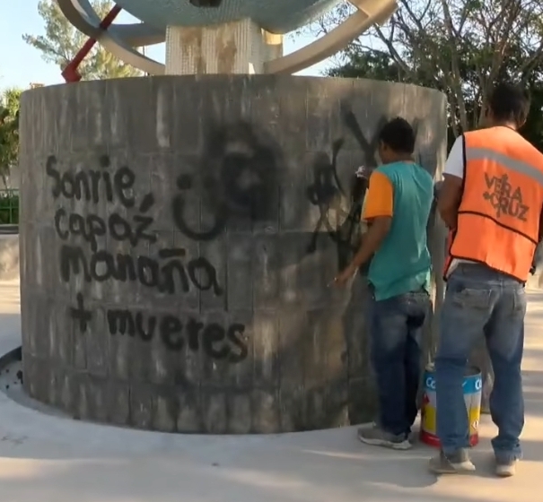 Personal del ayuntamiento se trasladó hasta el lugar y lograron borrar las pintas que hicieron en la base, por lo que todo quedó resuelto en cuestión de minutos.
